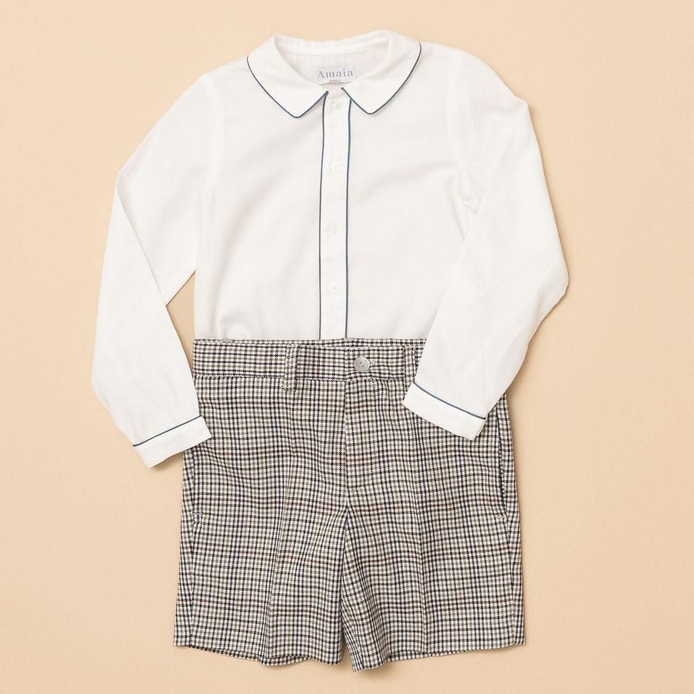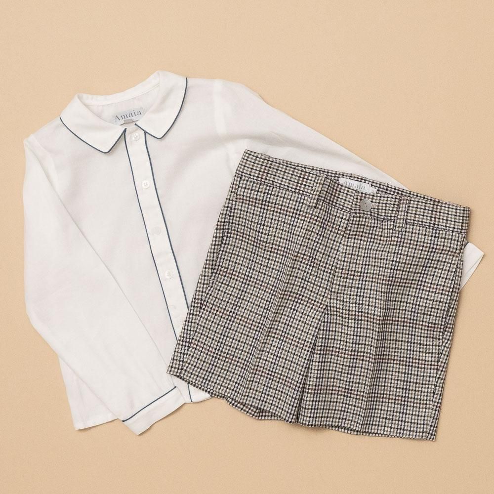 Amaia Kids - Daniel shirt long-sleeves - Grey blue piping アマイアキッズ - 長袖シャツ