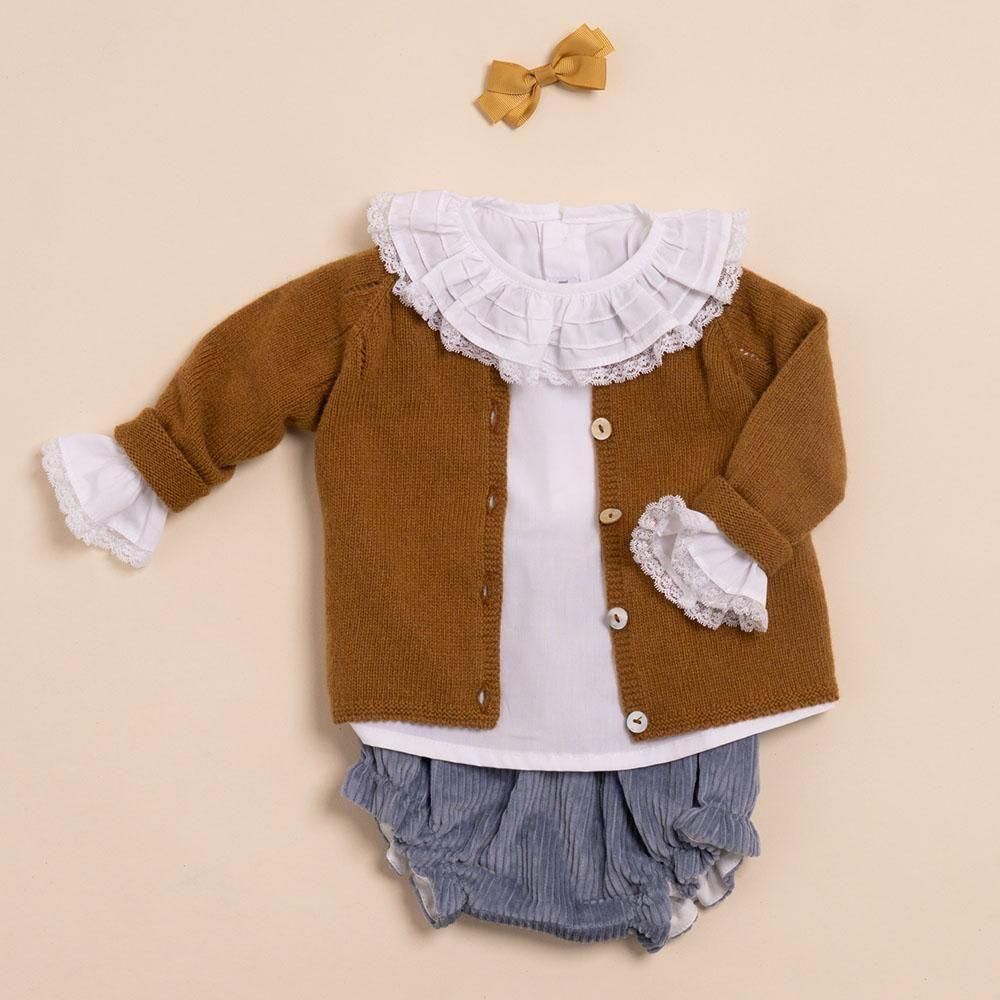 暖かくて秋冬らしいアイテムは、ブラウスやヘアアクセサリーと合わせて女の子ベビーの出産祝いにもオススメです。