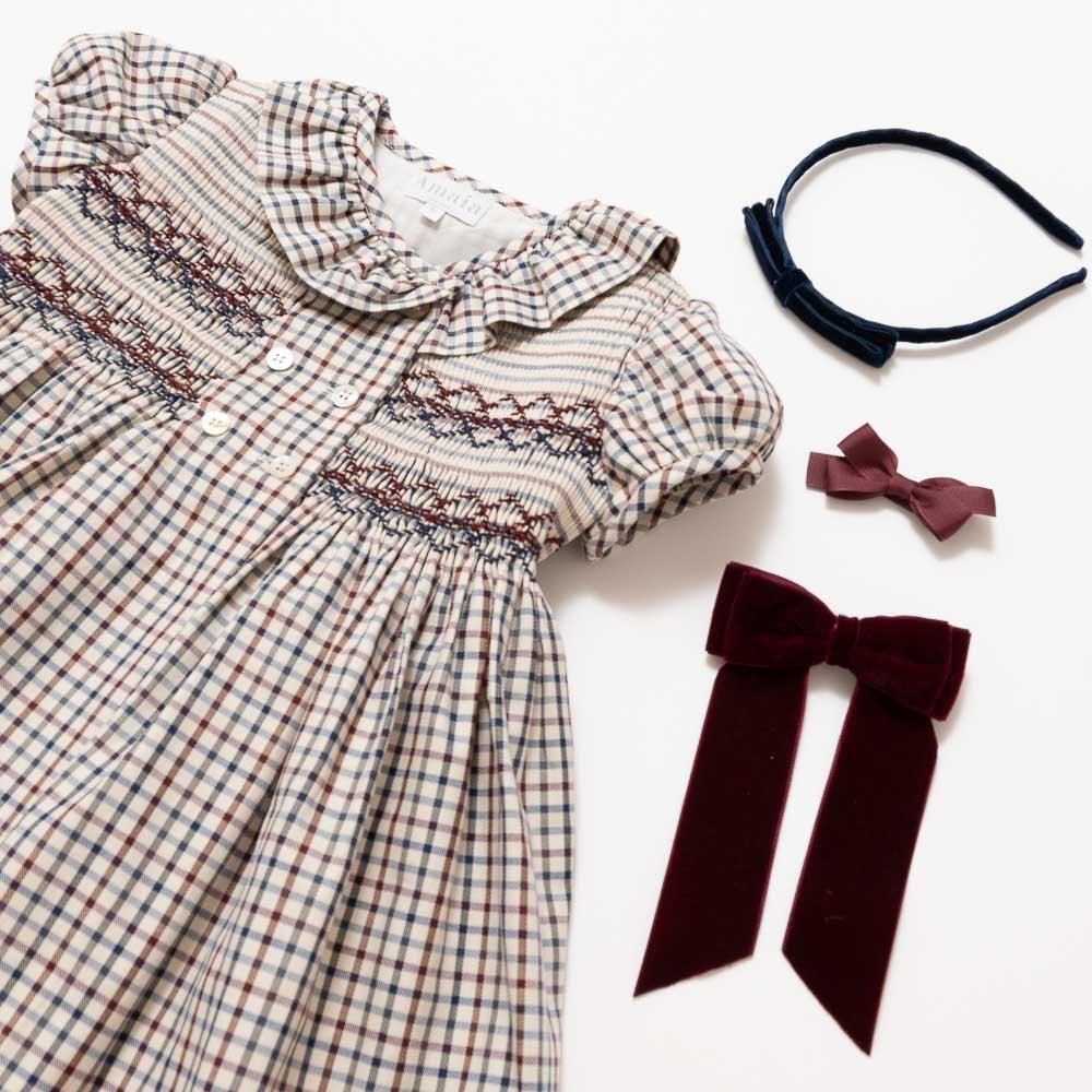 Amaia Kids - Gooseberry dress - Multico burgundy check アマイアキッズ - スモッキング刺繍入りワンピース