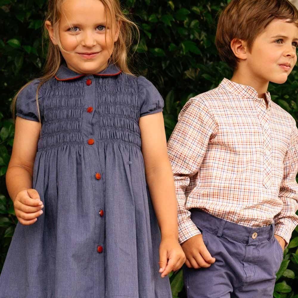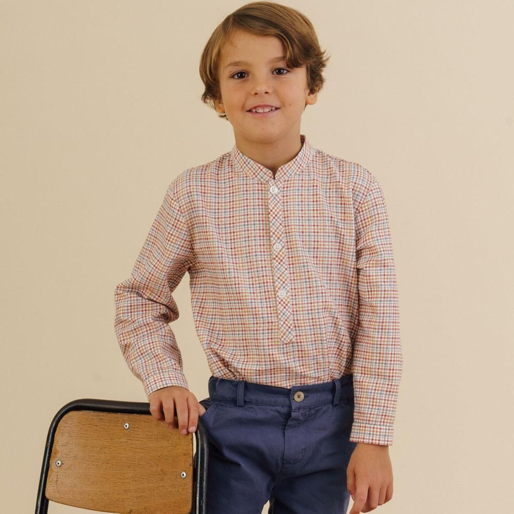 Amaia Kids - Pereprine shirt - Blue/Orange check アマイアキッズ - 長袖シャツ