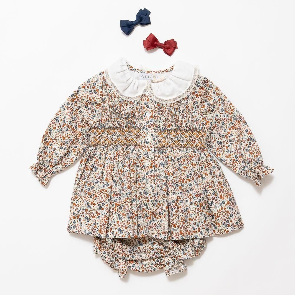 Amaia Kids - Jane set - Liberty Phoebe アマイアキッズ - リバティプリントスモッキング刺繍ベビーセット